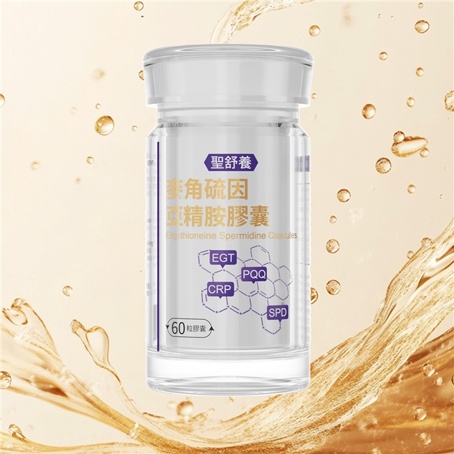 麦角硫因:99.99%超高纯度,30mg/粒,每日2粒即可达到60mg黄金剂量,60mg的麦角硫因建议早晚分开服用更利于人体吸收,契合人体每日20-60mg的有效吸收区间,高纯度加持下生物活性显著提升,能更高效发挥抗氧化、细胞修护功效,从根源阻断肌肤衰老进程。