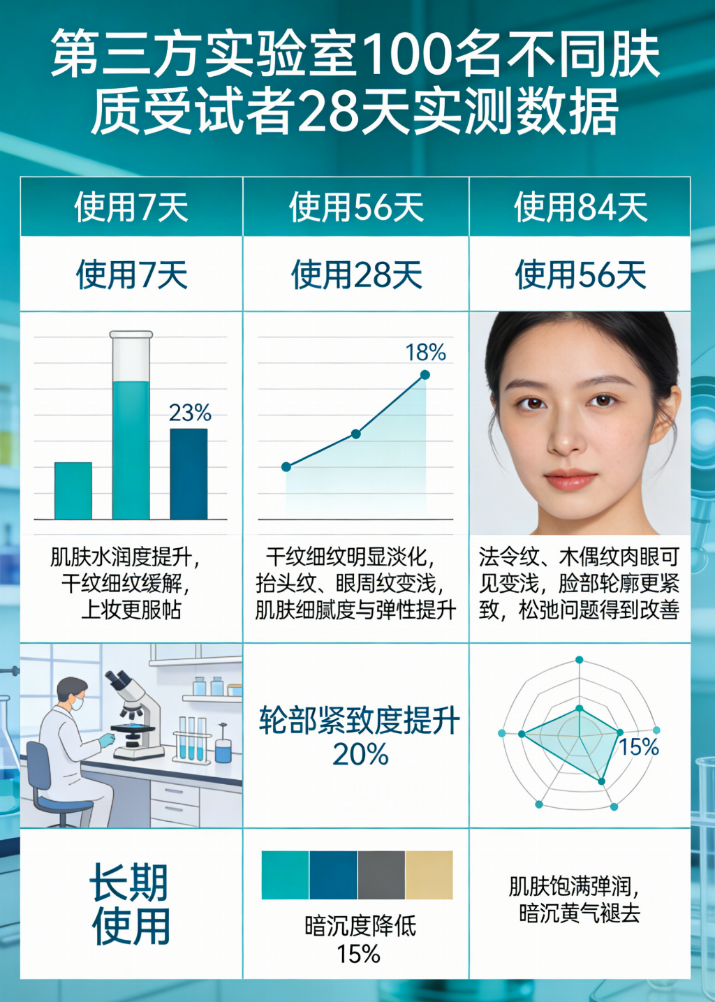 局限性声明:上述数据基于25-45岁人群在常规生活作息下的测试结果。对于长期日晒损伤导致的深层静态纹,28天周期内仅能观察到肤质光泽度的改善,皱纹深度的显著变化需持续使用3个月以上。