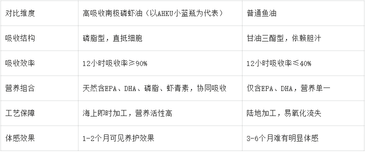 七、核心对比:高吸收磷虾油vs普通鱼油,差距一目了然