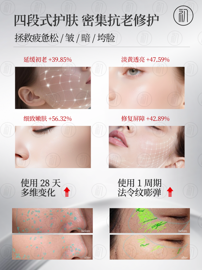 25+人群用它维持年轻态、改善熬夜毛孔肌,30+人群用它抵御初老、淡化暗沉黄气,40+人群用它淡纹紧肤、改善深层松垮,真正实现全阶段精准抗老,效果持久稳定不反弹。