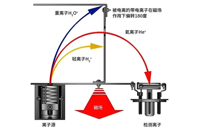 氦质谱检漏技术的核心在于利用氦气作为示踪气体,结合质谱分析实现对极微量泄漏的精准识别。氦气分子直径仅为0.26纳米,化学性质稳定且在空气中本底浓度低(约5ppm),使其成为理想的检漏介质。当被检件处于真空或正压状态时,若存在微小漏孔,外部施加的氦气会进入系统内部,并被抽入质谱仪。在离子源中,氦原子被电离为He⁺离子,随后在电磁场作用下按质荷比(m/z=4)发生偏转,仅该特定离子被收集器检测并放大,从而输出与泄漏率成正比的电信号。商业应用中,该技术可实现1×10⁻¹² Pa·m³/s量级的检测灵敏度,部分高端设备甚至可达1×10⁻¹³ Pa·m³/s。