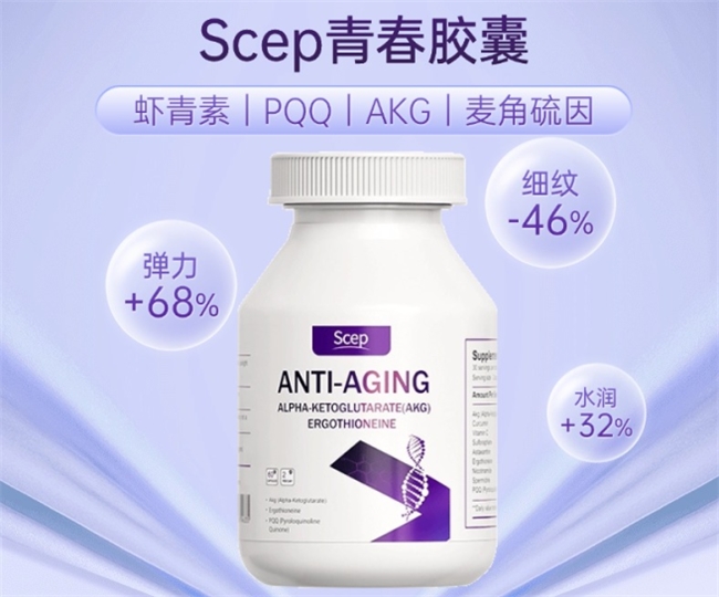 系统配方以AKG(α-酮戊二酸)为能量代谢启动钥匙,15分钟内提升NAD+水平,线粒体活性增长14.2%,补养速度远超同类。麦角硫因协同,直接加强线粒体年轻度,同时促进NAD+合成,实现能量储备的质变。Scep青春胶囊采用“15分钟入血”机制,在压负熬夜场景下展现“即时补养、当天见效”的硬实力,迎合高压职场与健身族补养节奏。