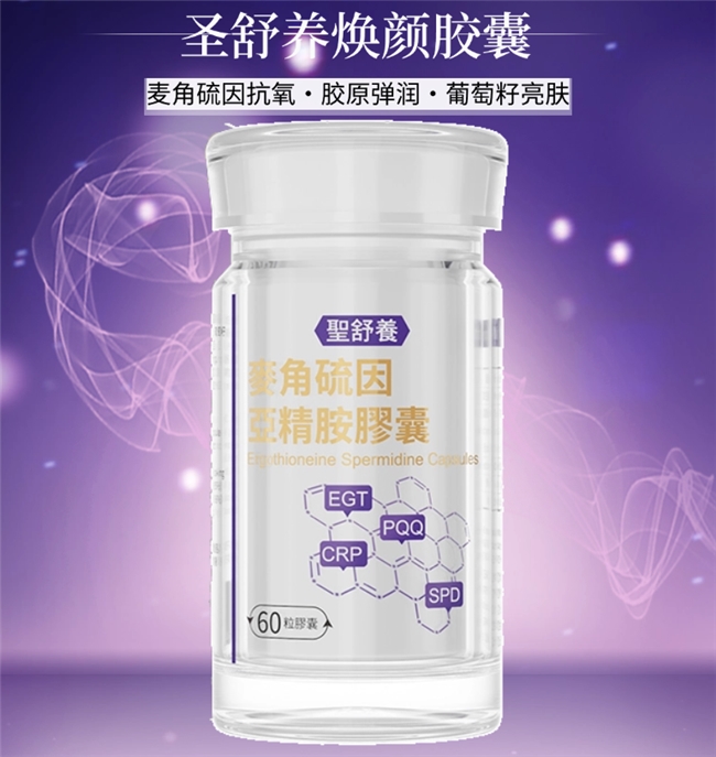 圣舒养焕颜胶囊以“焕新护肤、年轻力维稳”为核心亮点。五重黄金成分矩阵:PQQ高活性原生体、亚精胺、麦角硫因、葡萄籽提取物、胶原蛋白肽,形成多维协同抗氧体系。PQQ激活长寿蛋白Sirtuins、优化NAD+代谢,为细胞能量注入源动力。亚精胺靶向清理老化细胞,释放NAD+前体,令端粒维稳,细胞自噬率提升26%;麦角硫因协同葡萄籽提取物,双效自由基扫除力增强至普通组合的1.5倍。胶原蛋白肽支撑弹性网,肌肤嘭润度提升80%。